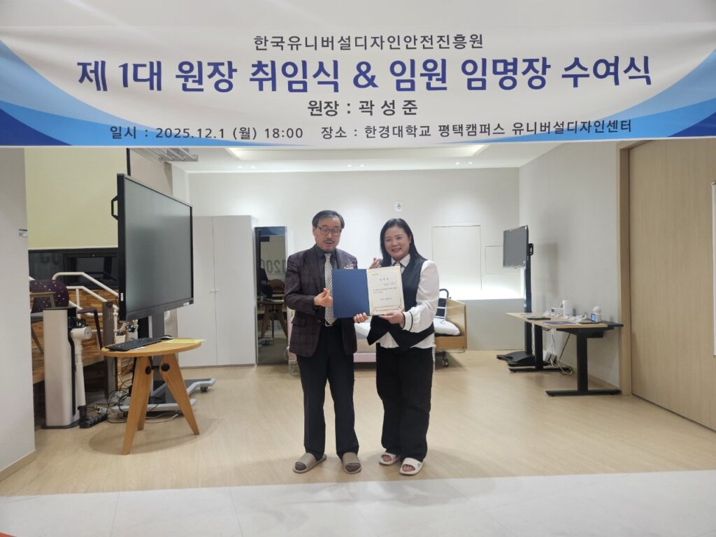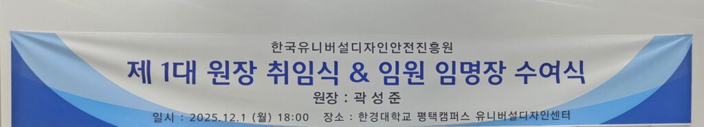 “유니버설디자인안전진흥원” 제1대 원장 췽임식 및 초대 임원 임명장 수여식(2025.12.1)